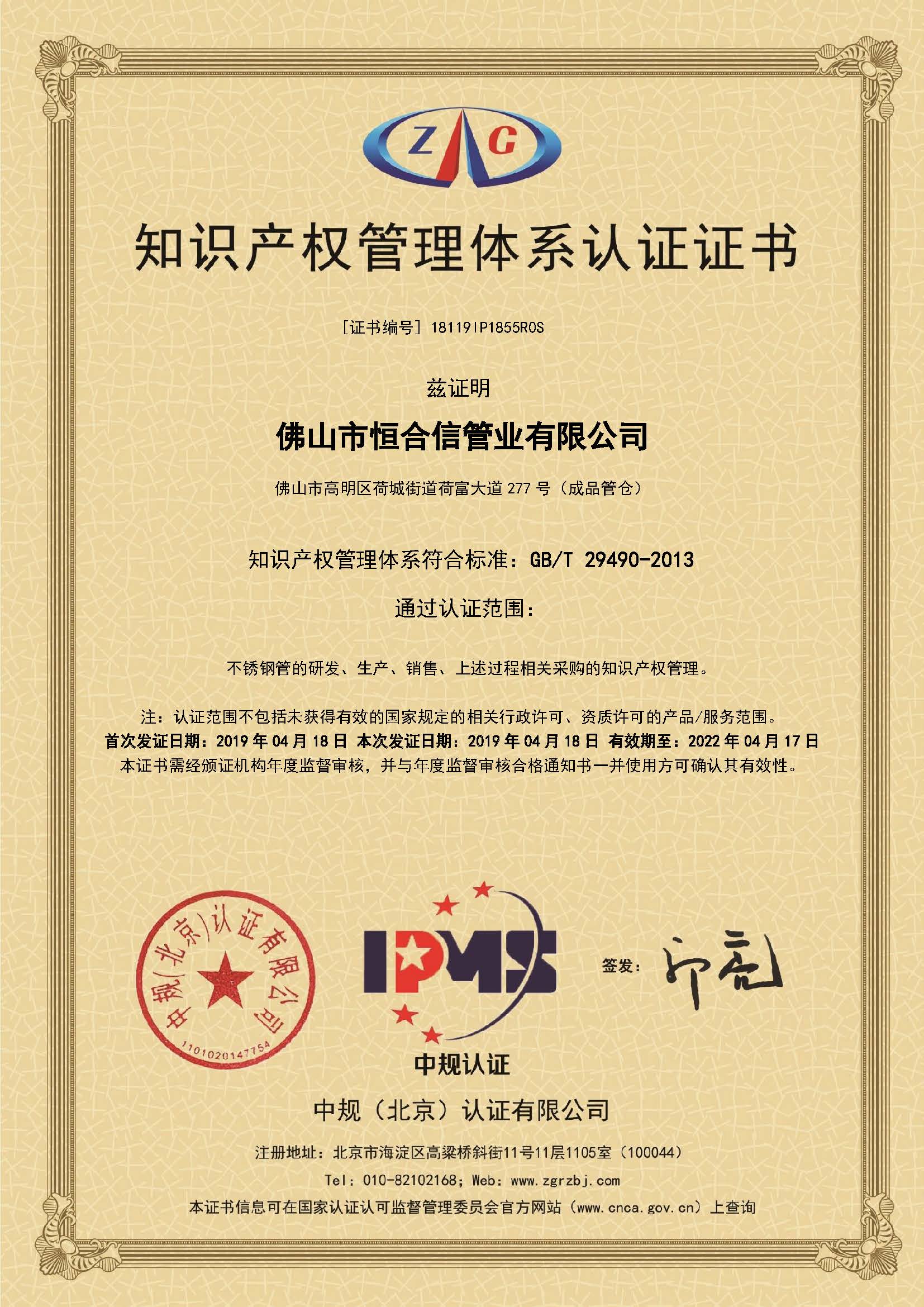 知識(shí)產(chǎn)權(quán)管理體系認(rèn)證證書(shū)