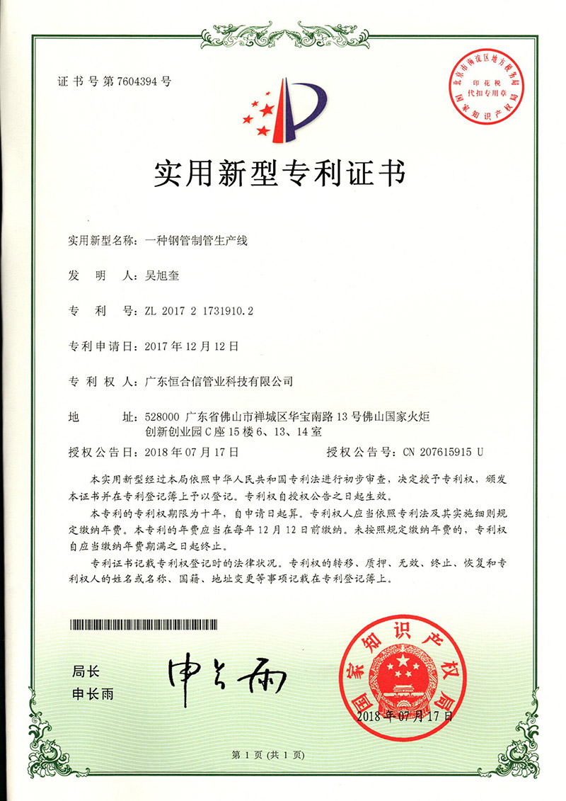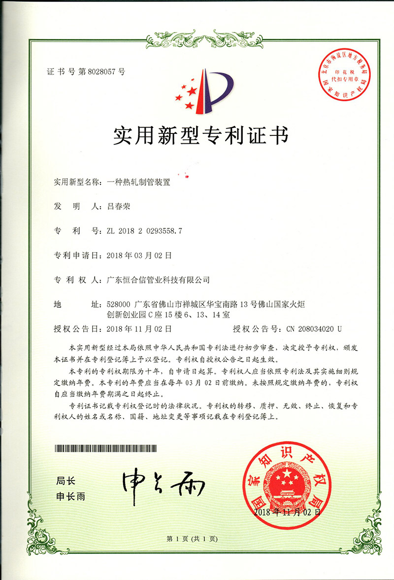 一種自動切管滾槽機專利證書