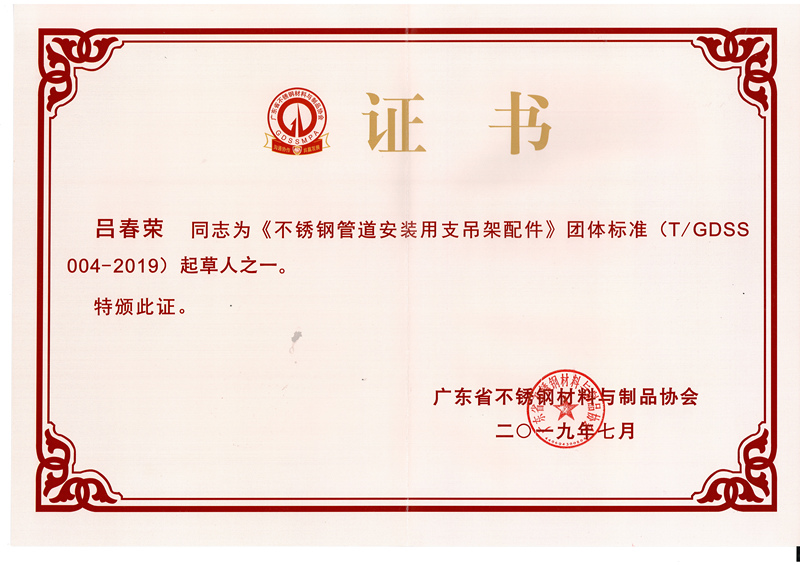 論壇上,我會(huì)常務(wù)副會(huì)長(zhǎng)陳培華、杜海波、李延平分別為《不銹鋼管道安裝用支吊架配件》團(tuán)體標(biāo)準(zhǔn)起草單位及起草人頒發(fā)牌匾及證書(shū)。