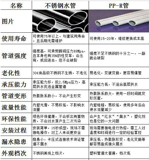 只有在這之后,人們才明白,作為給排水管道,它必須具備以下特點:1.使用壽命長(相當于甚至超過建筑物的使用壽命,達到70年以上)2.對水質(zhì)無污染,無結(jié)垢,管道無堵塞,價格相對實惠。不銹鋼水管完全滿足了所有優(yōu)點,是真正的環(huán)保、健康、無污染的,是最完美的給排水管道解決方案。