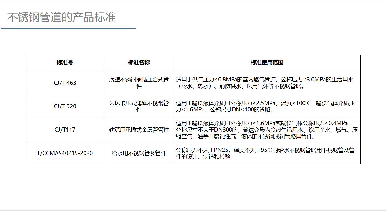 不銹鋼管道的產(chǎn)品標(biāo)準(zhǔn)