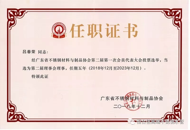 恒合信管業(yè)總經(jīng)理呂春榮表示,新起點,新希望,我們必將風雨兼程、鏗鏘前行,珍惜榮譽,再接再厲!